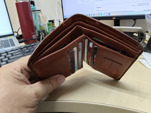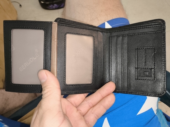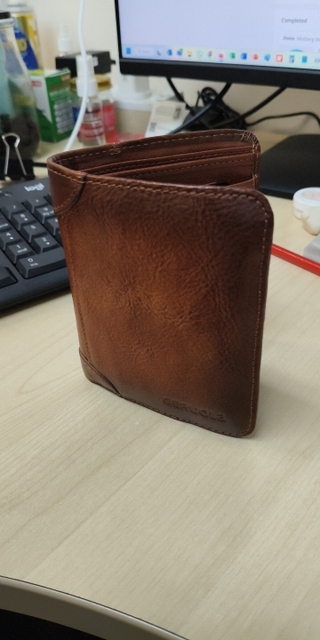 The wallet is fine although I don't know if it is really leather or synthetic leather,